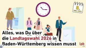 Am Sonntag, den 8. März 2026, ist Landtagswahl. Die Landeszentrale für politische Bildung Baden-Württemberg (LpB BW) hat hierzu mehrere Erklärvideos veröffentlicht.